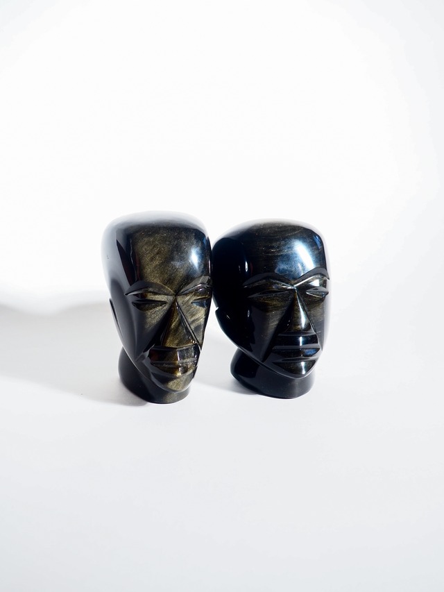 Obsidian carved head object from Mexico ¥5,850-(intax)/1個 w60 d80 h100 w85 d75 h100 メキシコの伝統素材・黒曜石を用いた、アステカ様式の顔彫刻です。非常にクールなので是非!