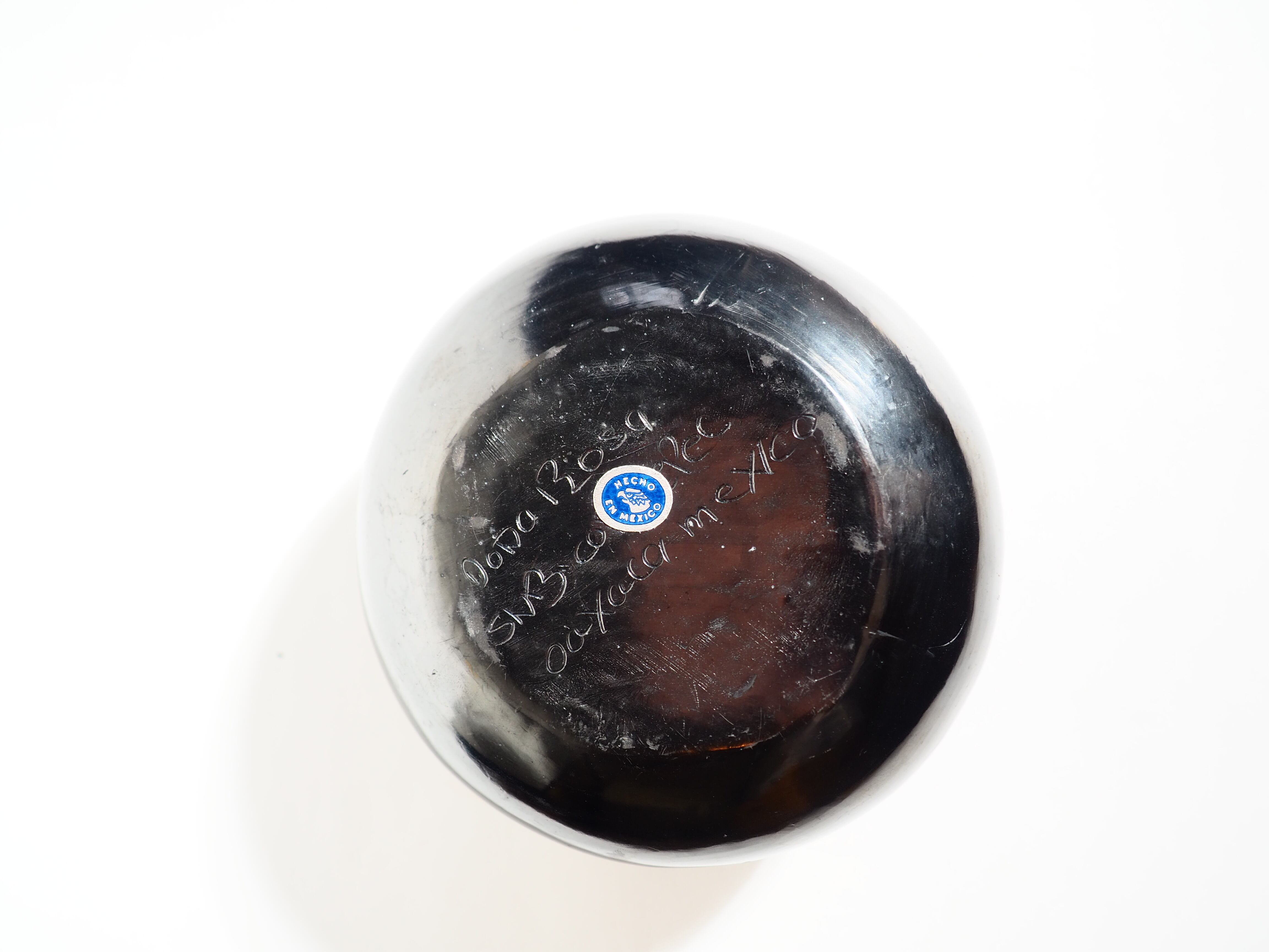 メキシコ・オアハカ州サン・バルトロ・コヨテペック村で作られた伝統的な黒陶作品です。Doña Rosaは、この独特な黒い輝きをもつ陶器を広めたことで世界的に知られているそうです。