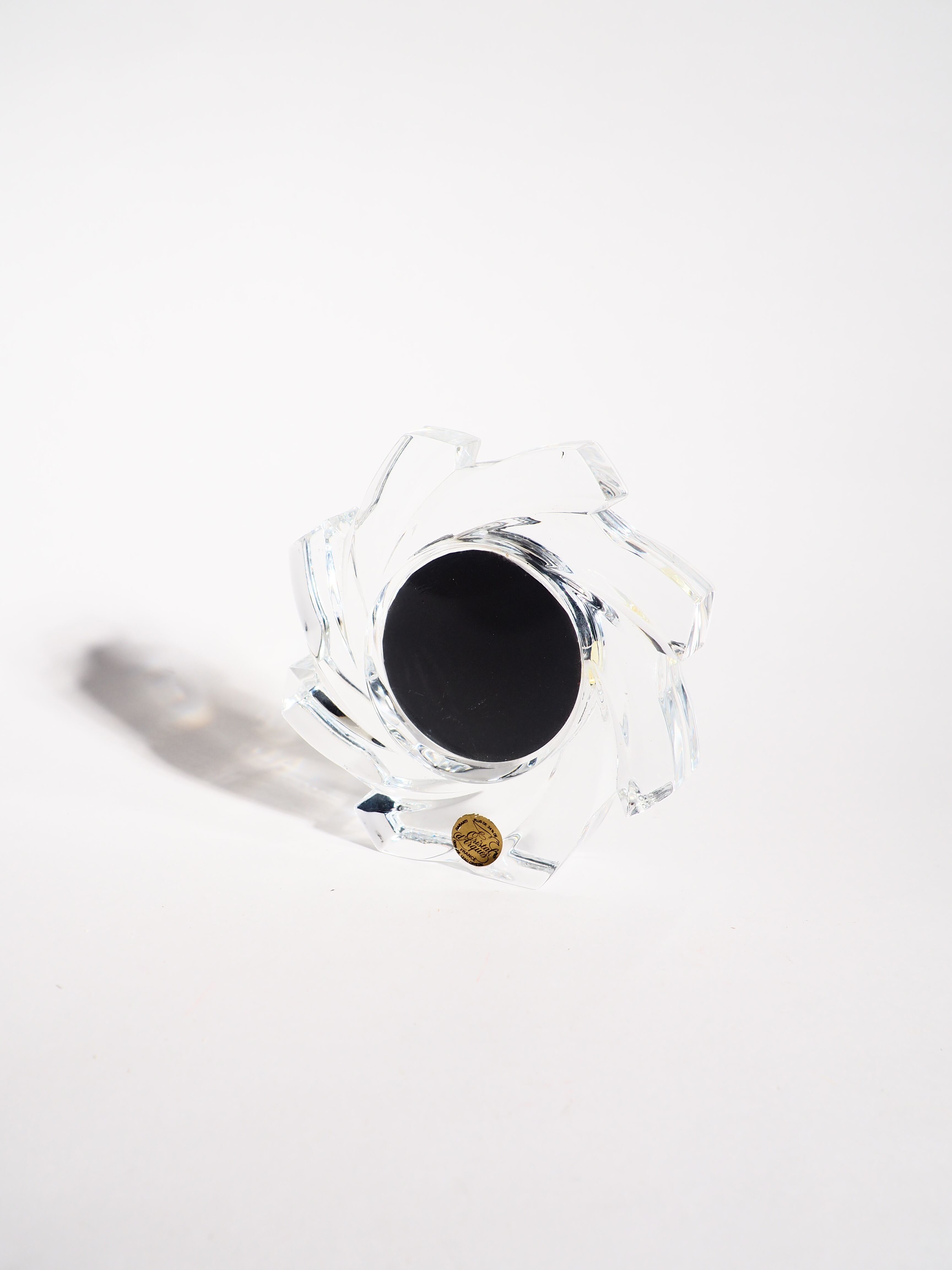 特徴的な形をしたクリスタルフォトフレームです。丸い形の写真が入ります。是非!