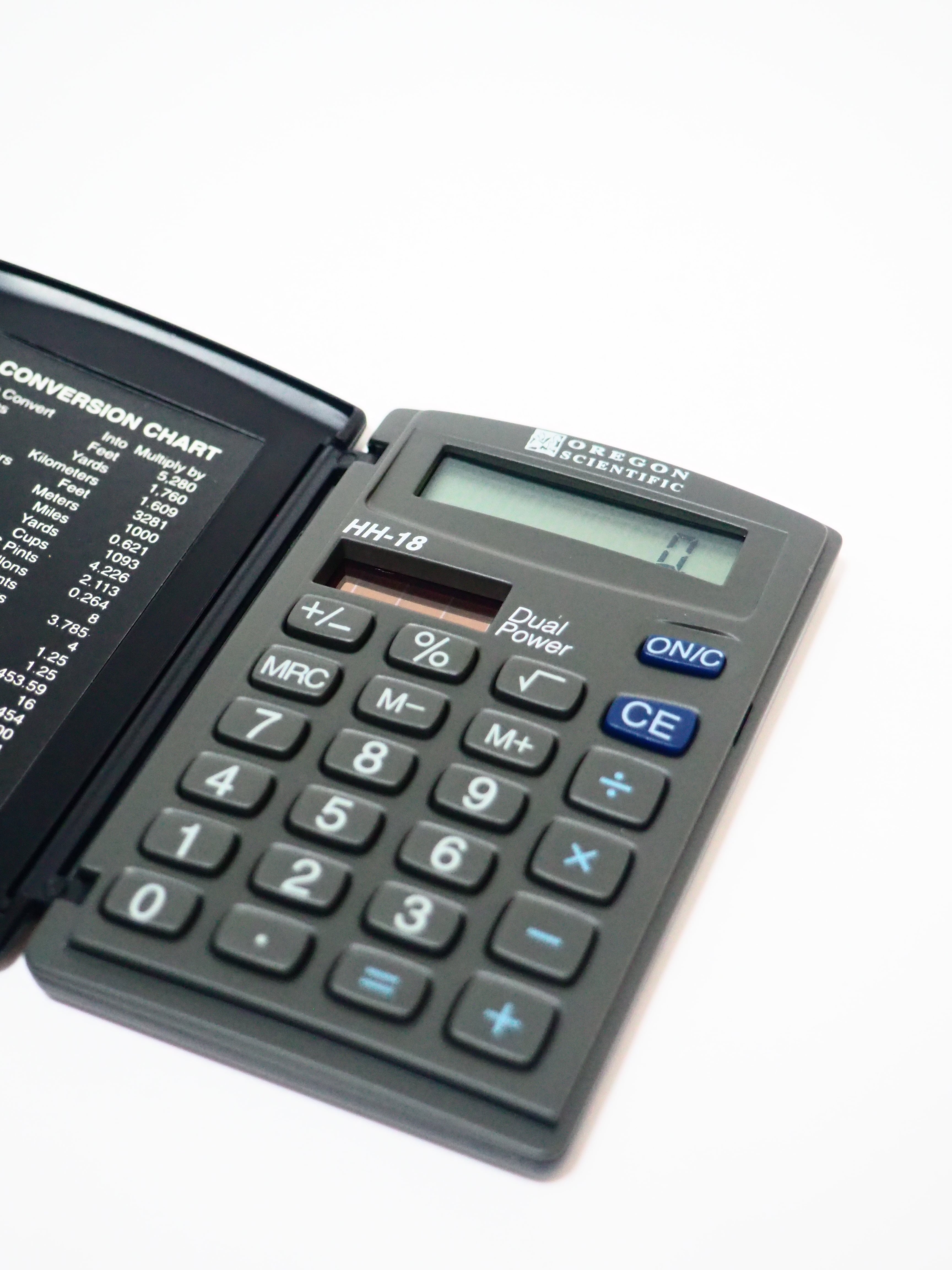 アメリカ発のエレクトロニクス企業Oregon Scientific inc.の単位換算表付き手帳型ソーラー電卓です。クールなので是非!