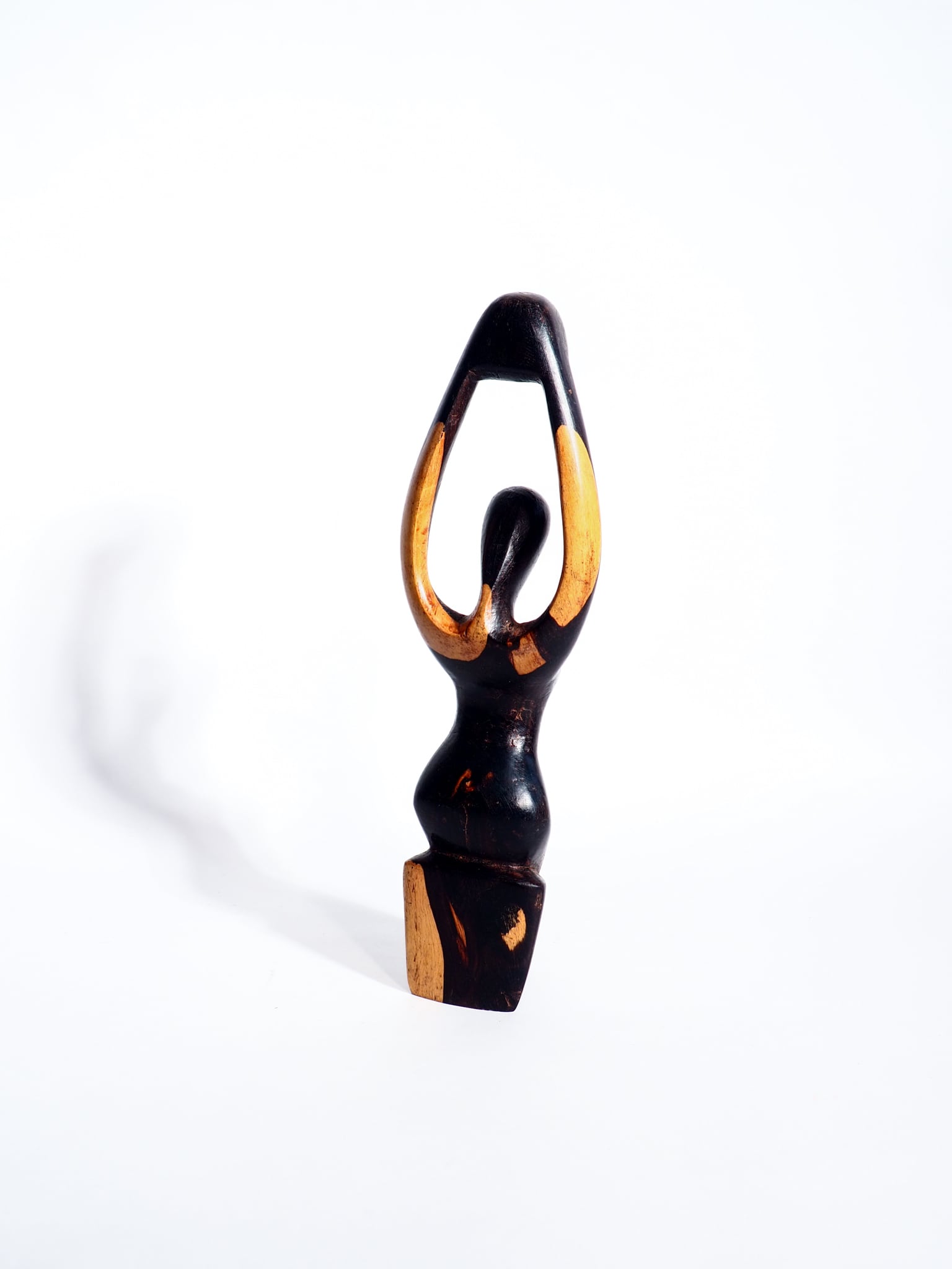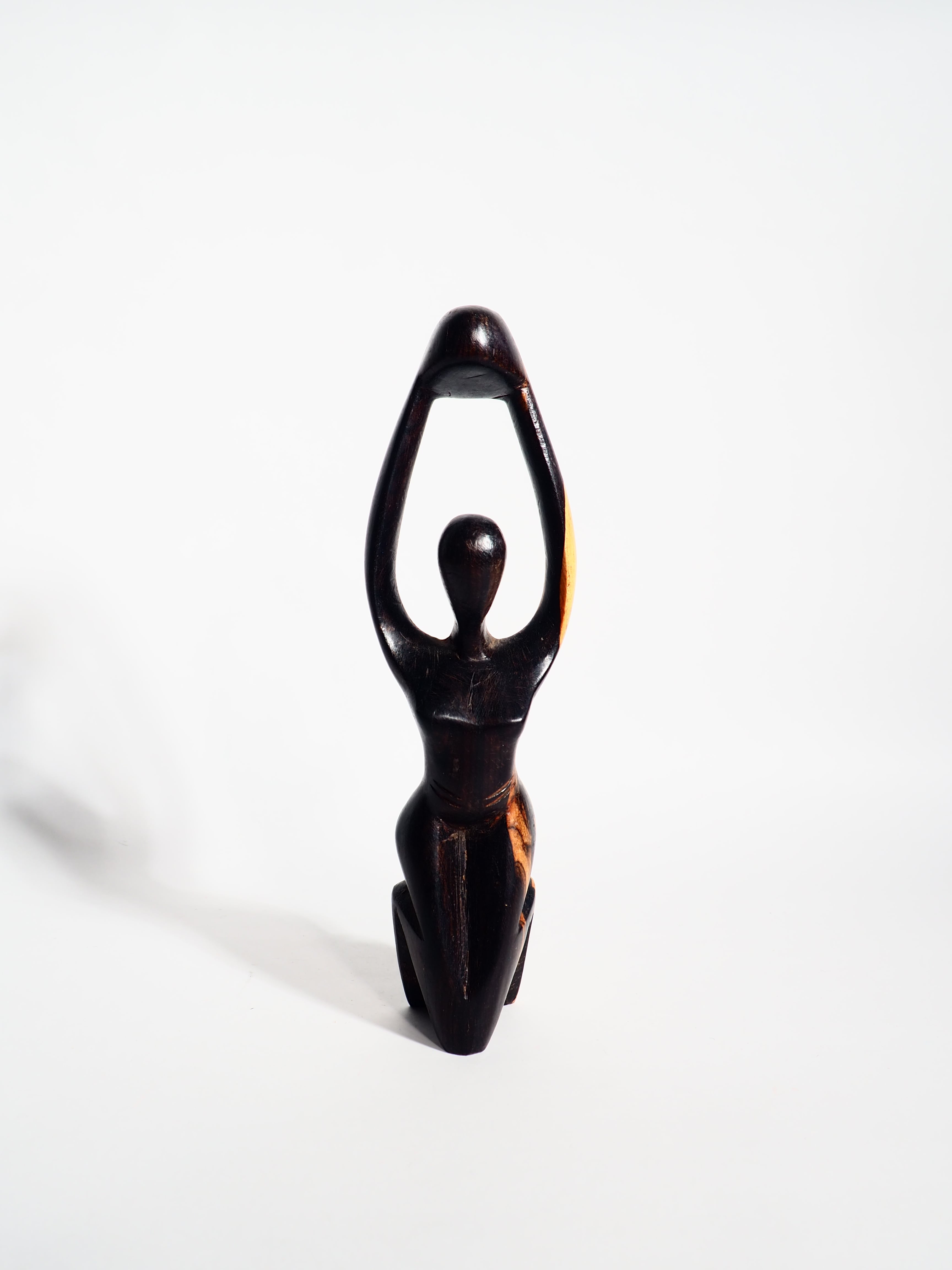 アフリカンブラックウッドの女性木彫りオブジェです。2色での配色が非常にクールです。是非!