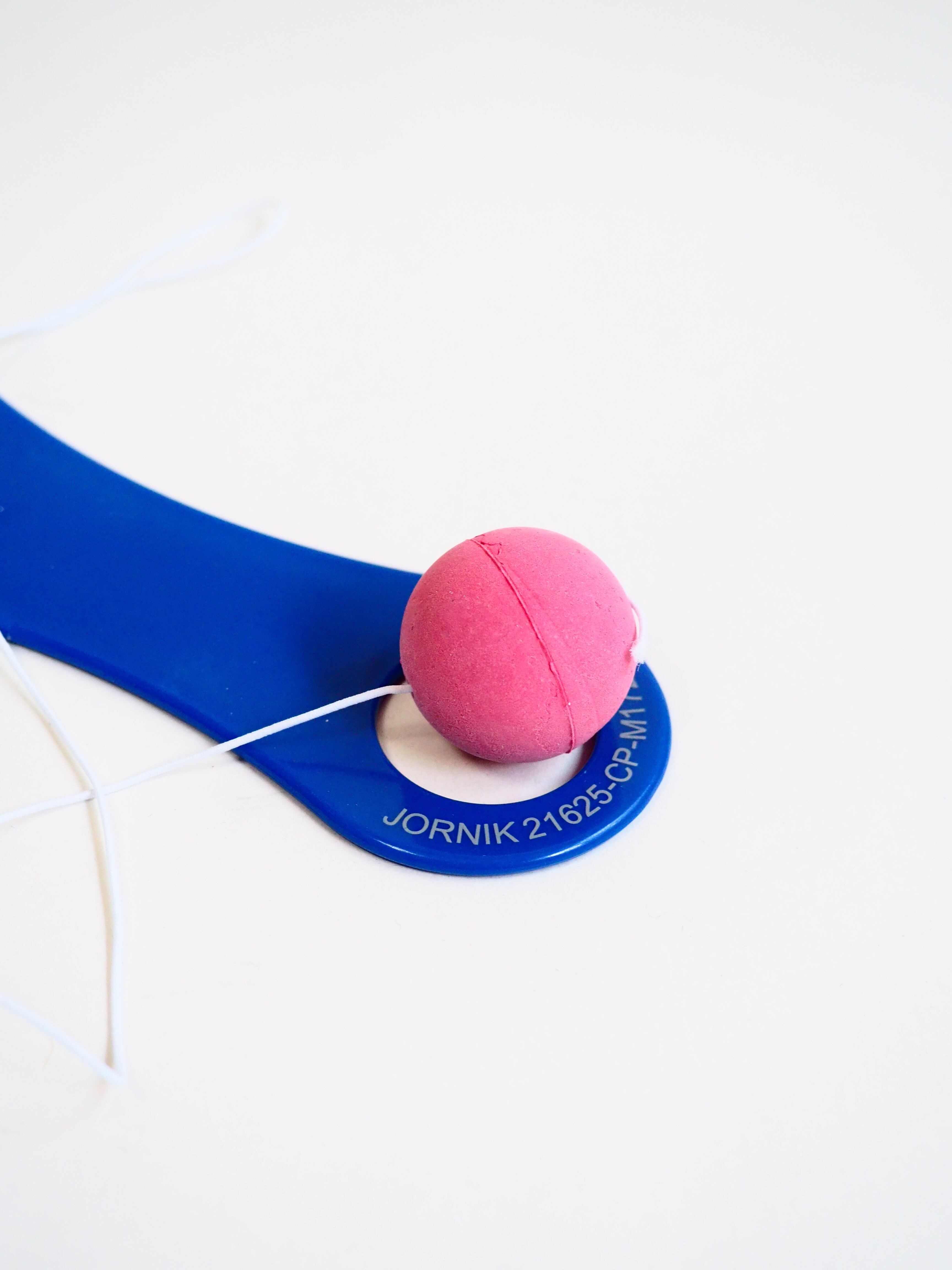 ロゴが可愛らしいパドルボールラケットです。ボールが紐でラケットに繋がれており、ボールを1人で打ち返せます。是非!