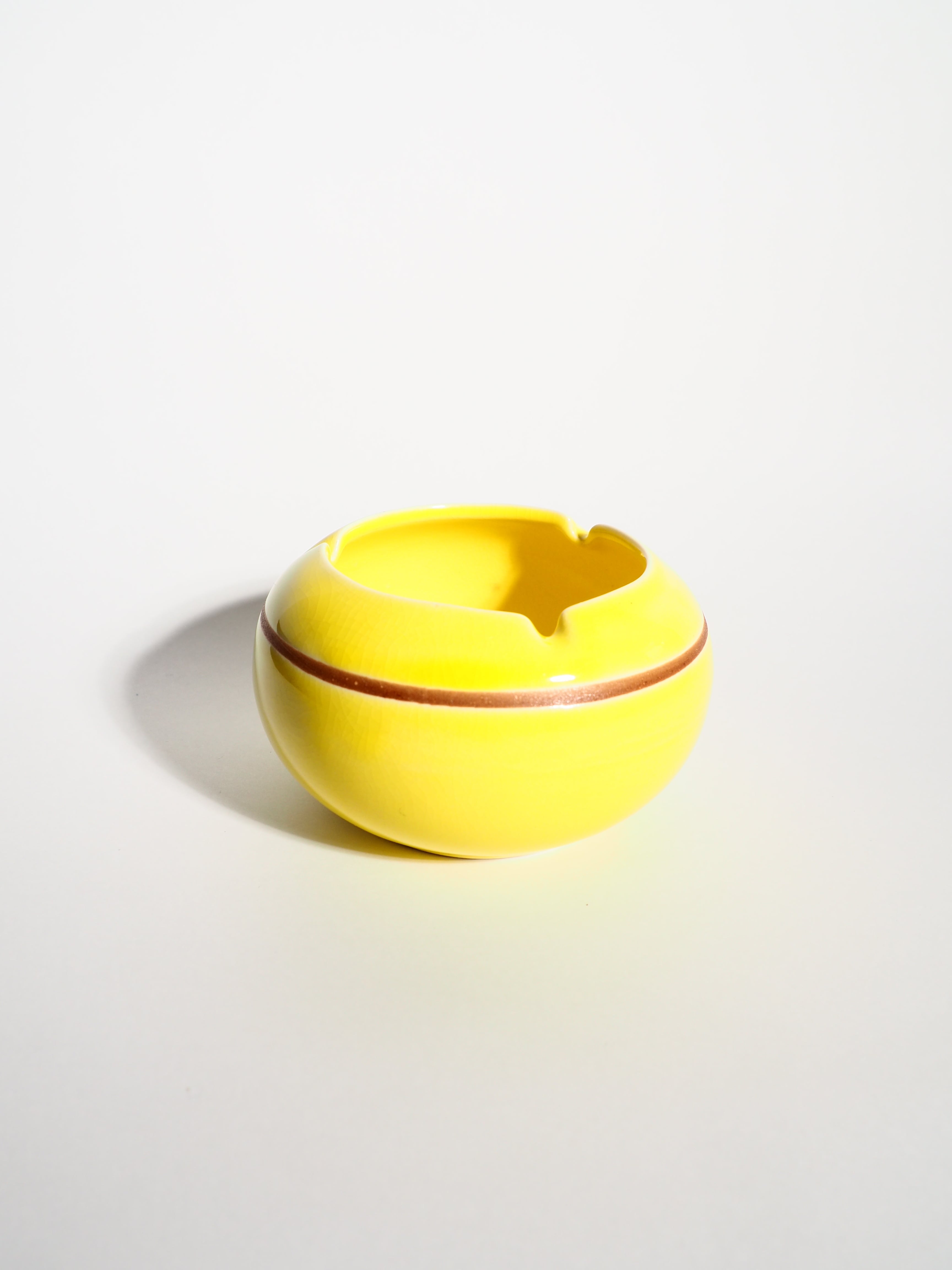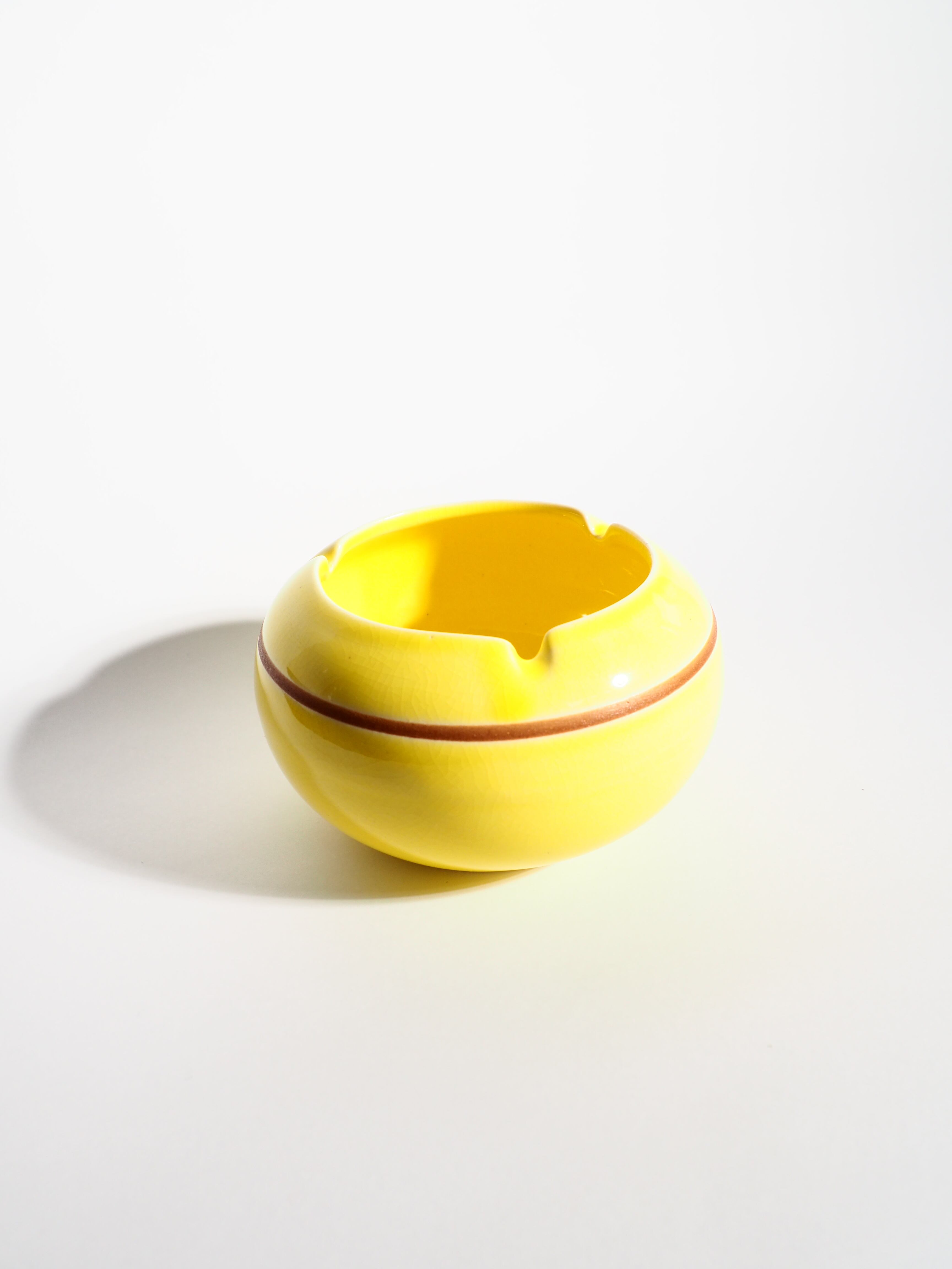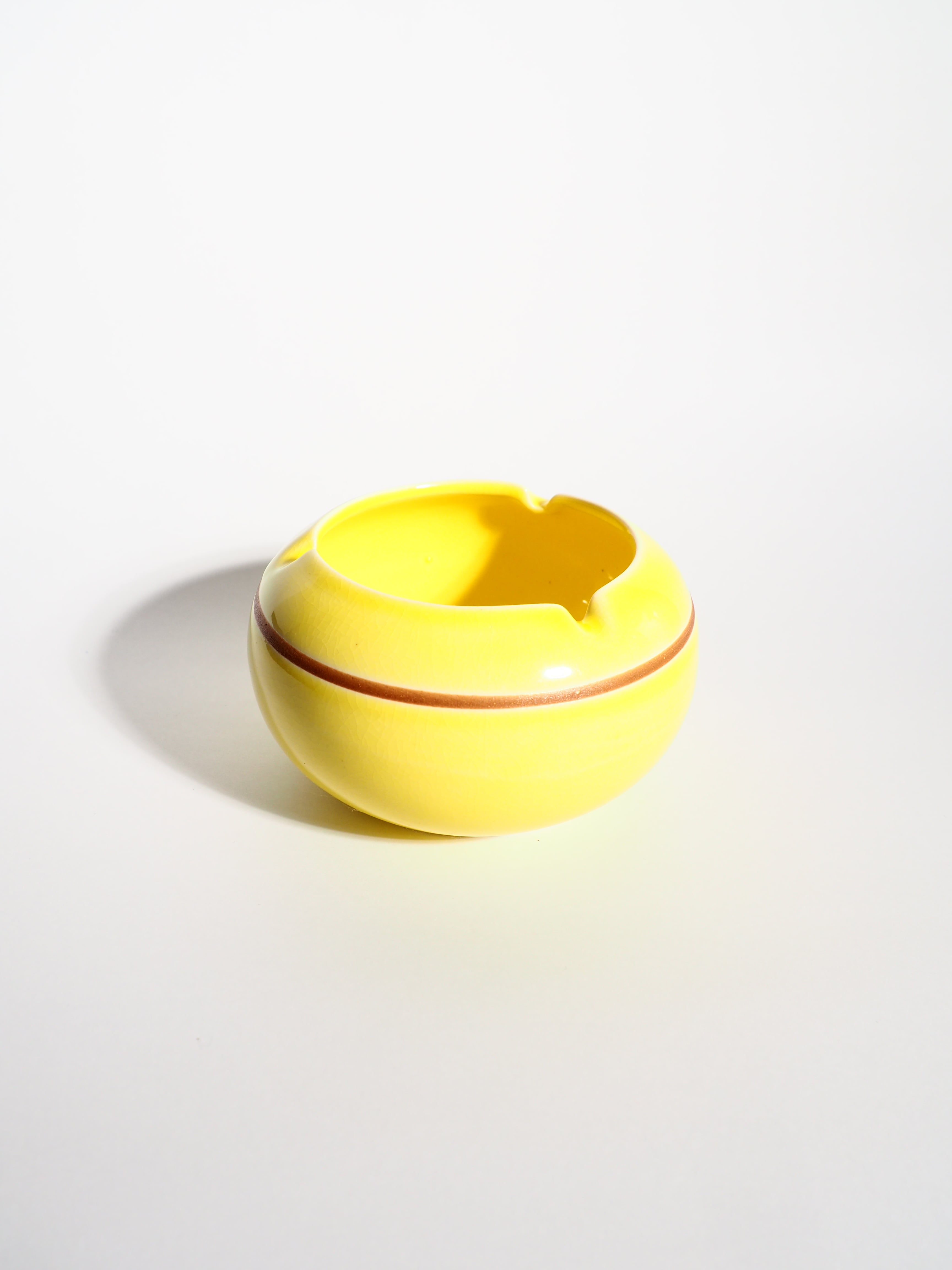 Lined ceramic yellow ashtray