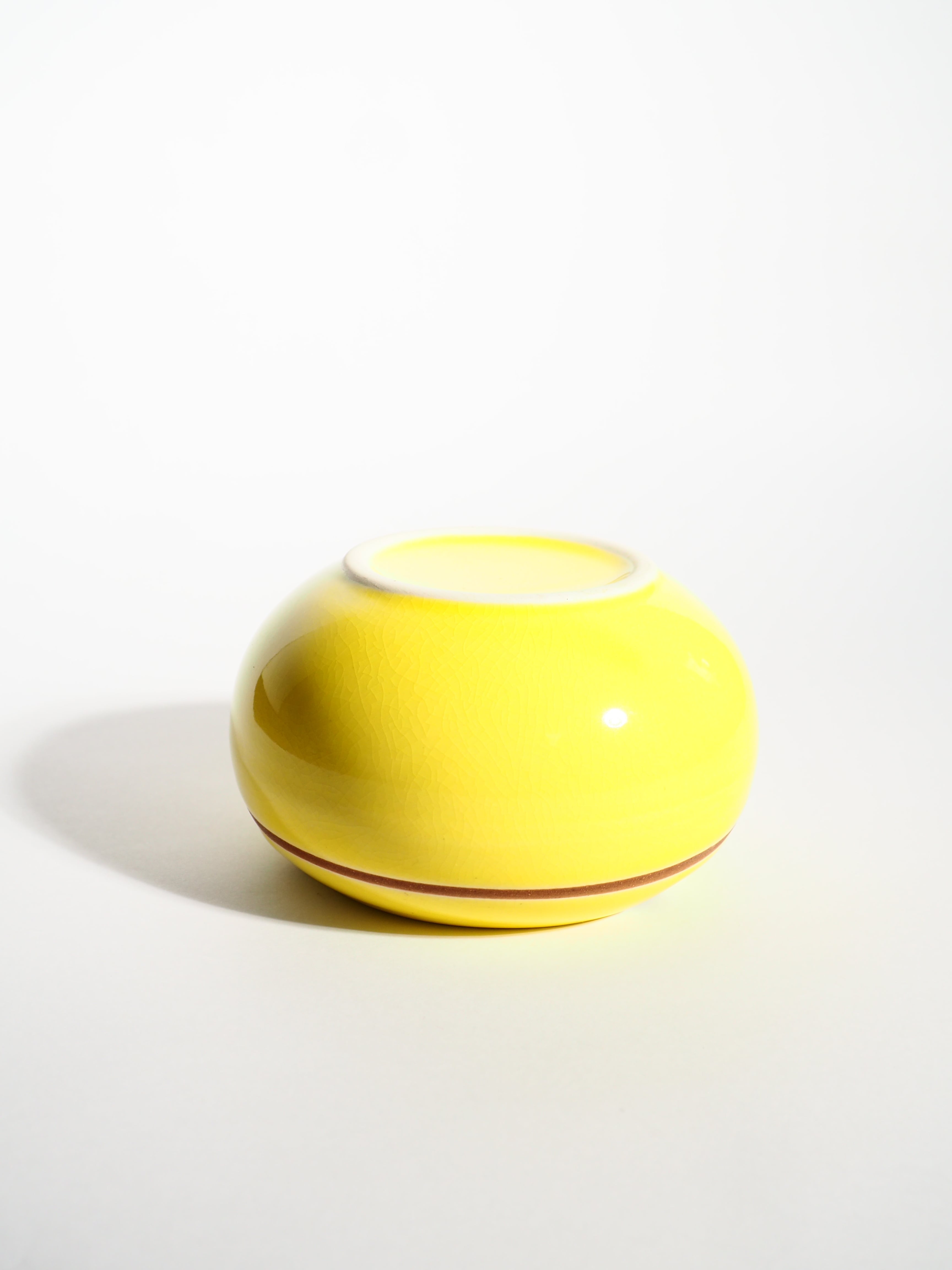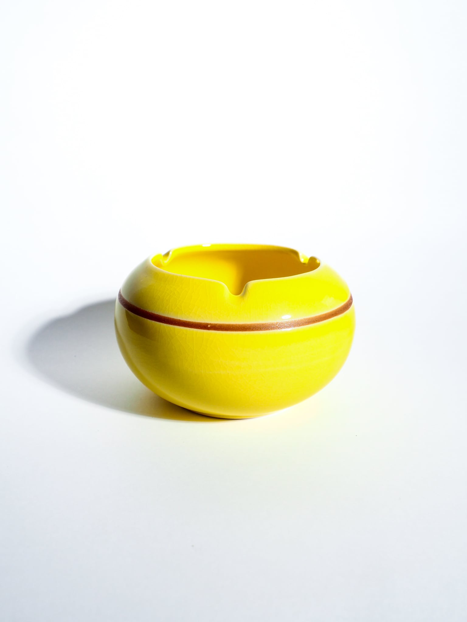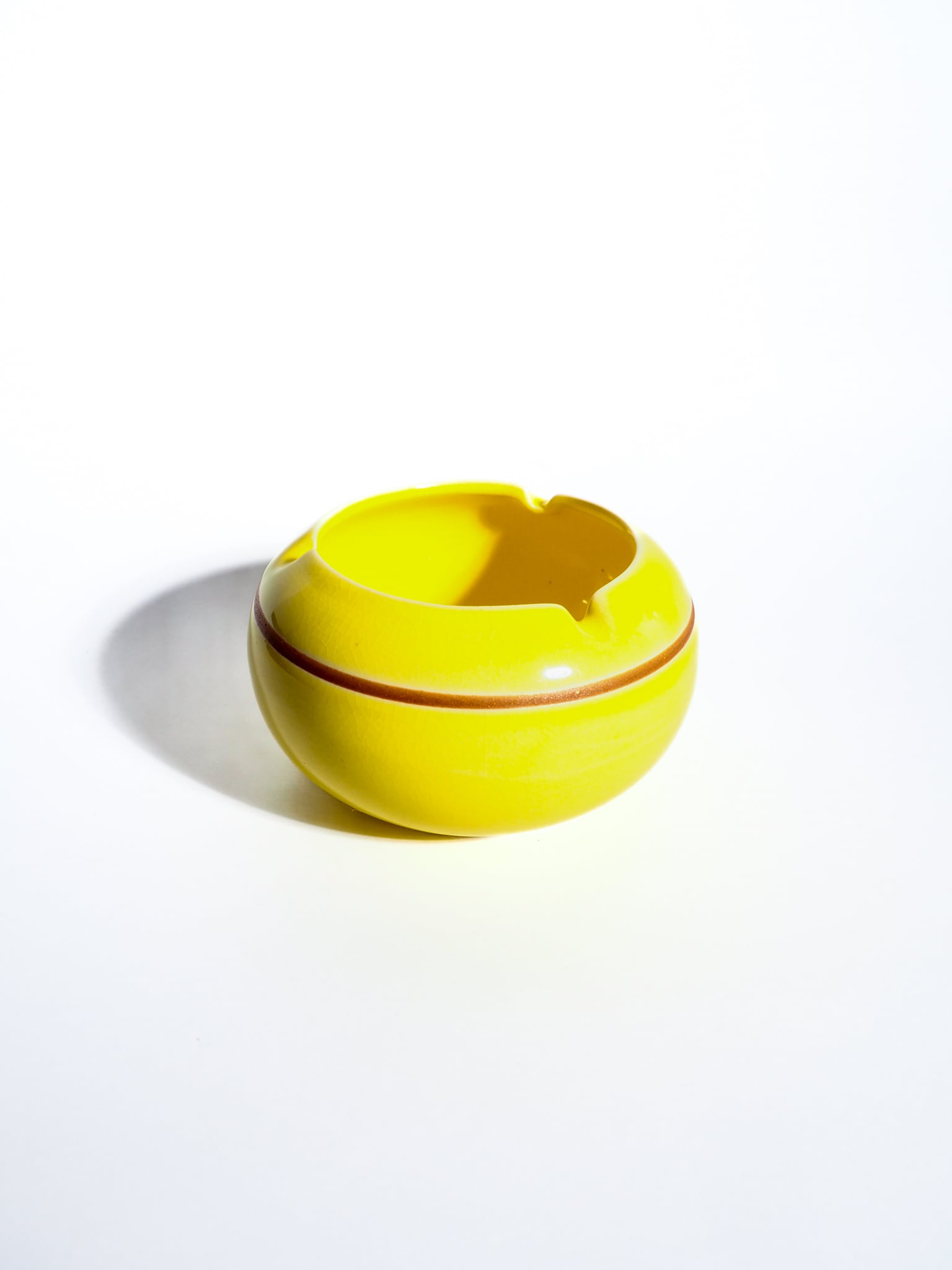 Lined ceramic yellow ashtray