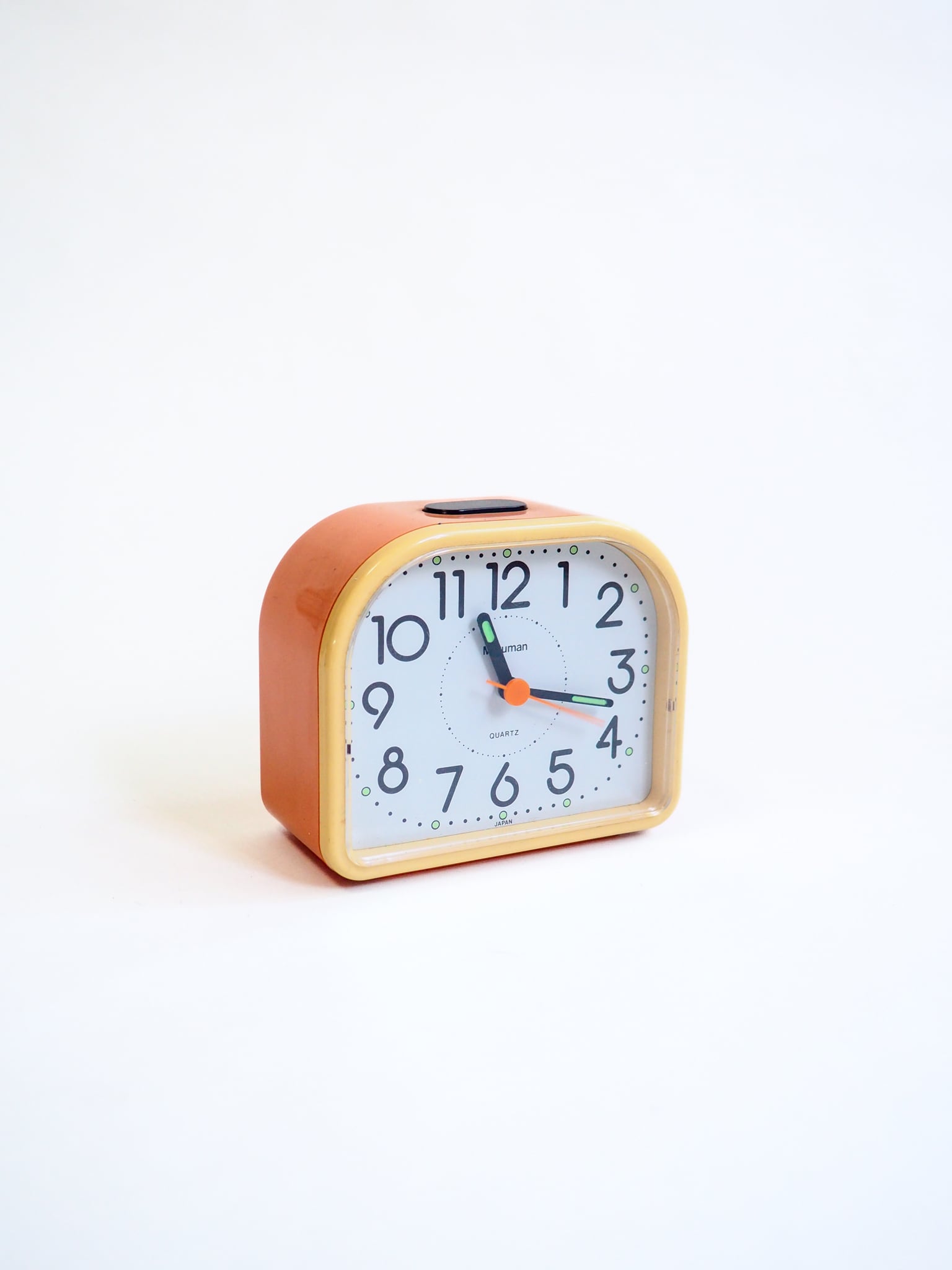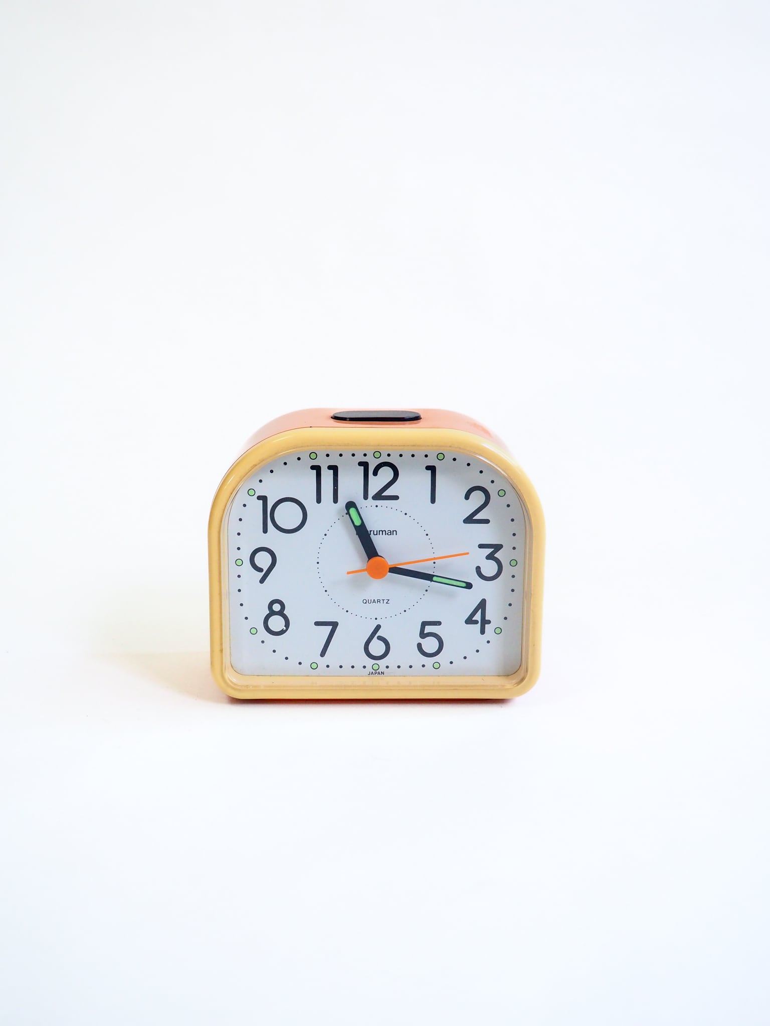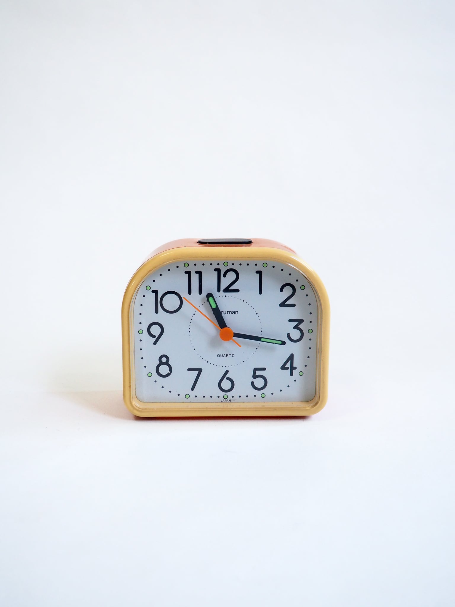 ピンクとクリーム色が可愛らしい置き時計です。単二電池一本で動作します。是非!