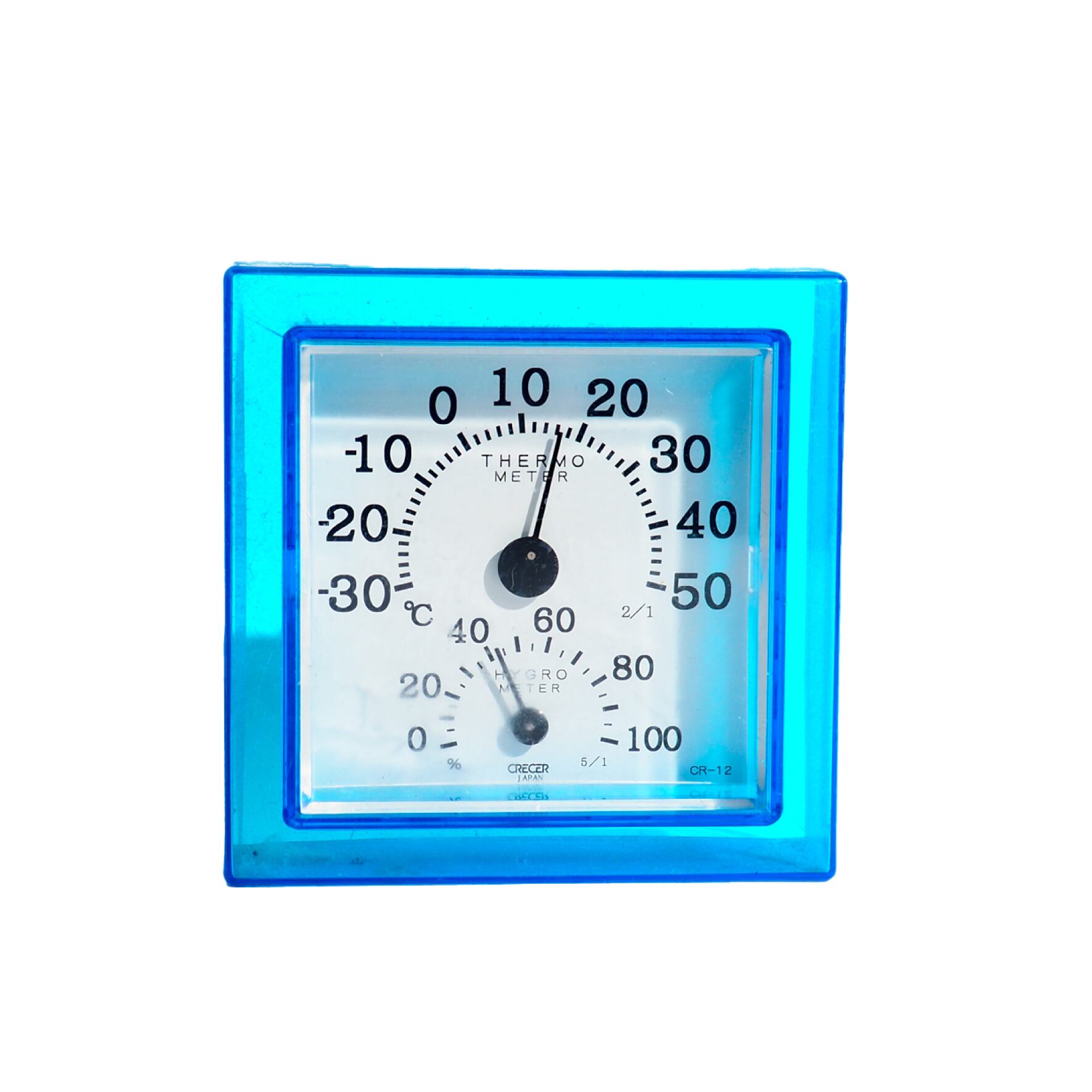 w100 h100 d25 青いクリアが可愛らしい壁掛けミニ温度計です。是非!