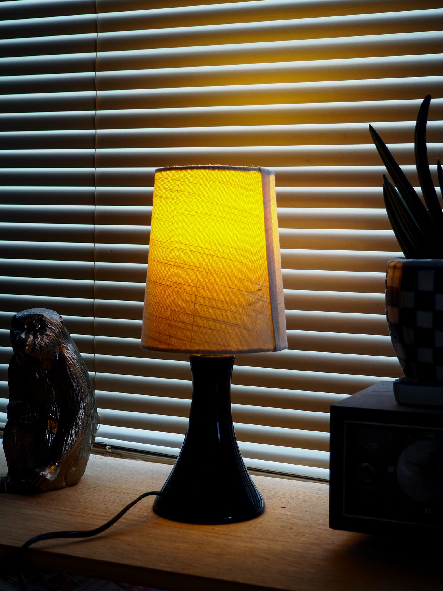 Navy base shade lamp ¥8,800-(intax) w130 d130 h300 ネイビーの土台が可愛らしい高さのあるシェードランプです。クールなので是非! ※電球付属します。 ※土台部分に多少の傷等がございますのでご了承ください。