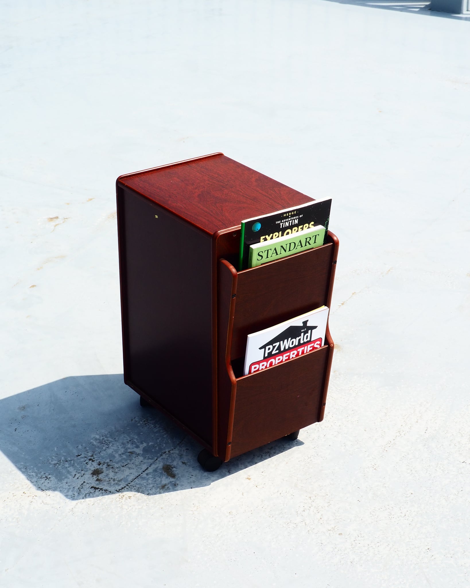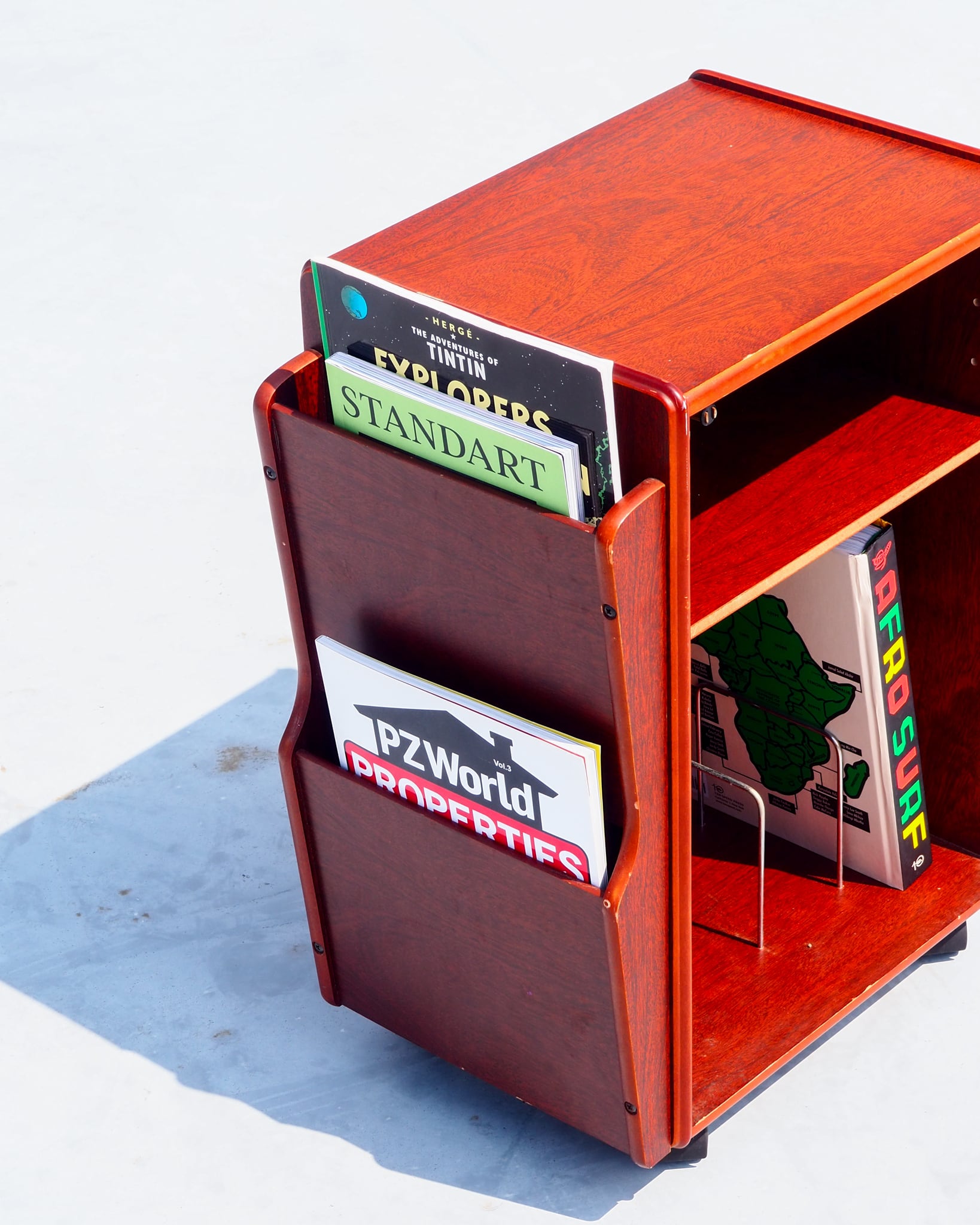 Wooden magazine rack with casters made in taiwan